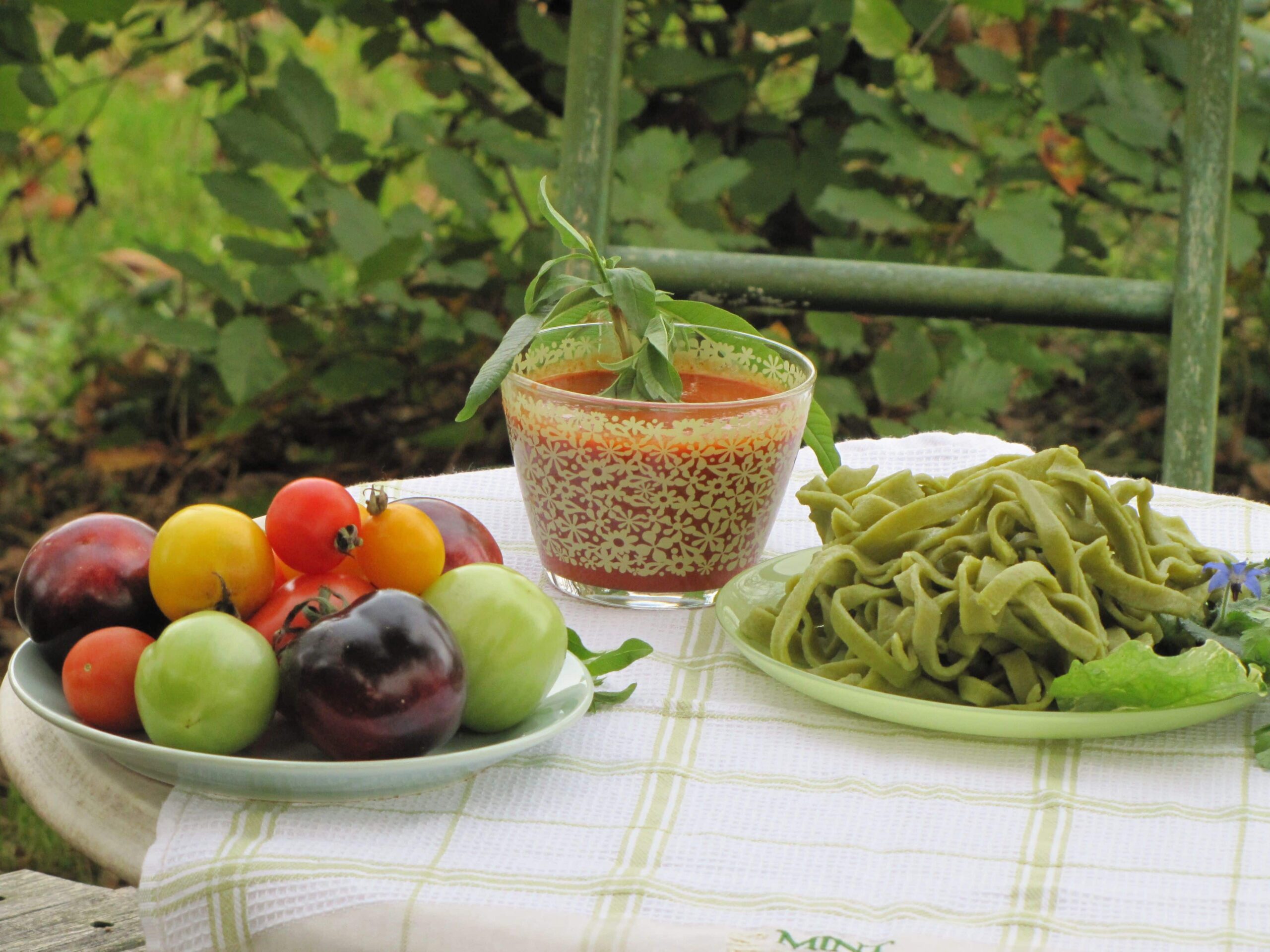 Petersiliennudeln (vegan) 3 Bund Petersilie etwas Wasser, mit der Petersilie aber nicht mehr als 200 ml 300 g Dinkelmehl 100 g Hartweizengrieß oder Hartweizenmehl (ohne Nudelmaschine: etwas Buchweizenmehl) (wahlweise kann man auch 150 g Flüssigkeit inklusive Petersilie nehmen und dafür etwas Öl und eine Prise Salz – ich bevorzuge allerdings die erste Variante) Die Petersilie […]